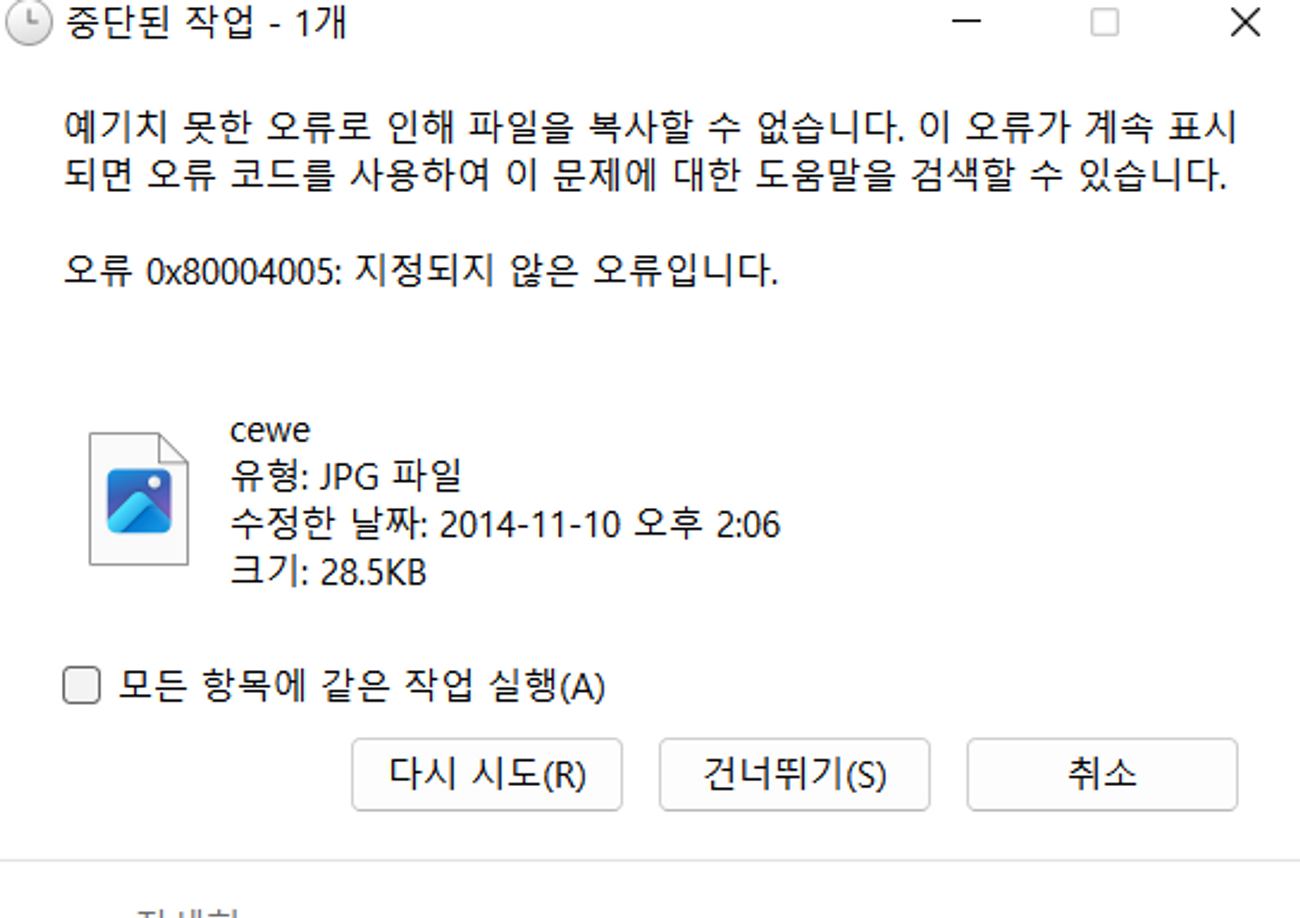 해당 오류가 발생하는 이유를 찾아보니 “잘못 구성된 시스템 파일로 인한 레지스트리 오류 및 손상”라고 한다.